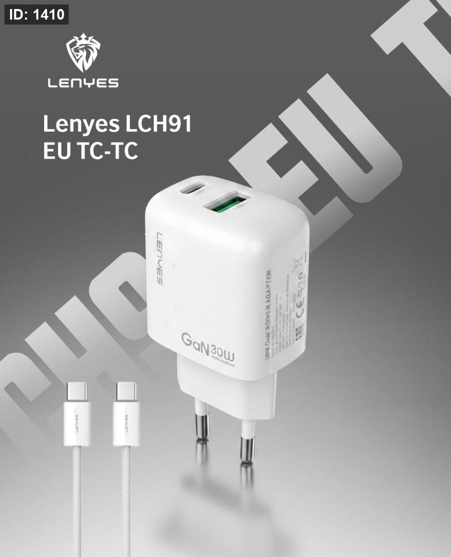 شاحن GAN سريع من Lenyes مع كابل بقدرة عالية وصغير الحجم، مناسب لشحن الهواتف الذكية والأجهزة الأخرى بسرعة وأمان عبر منفذ USB-C و TC.