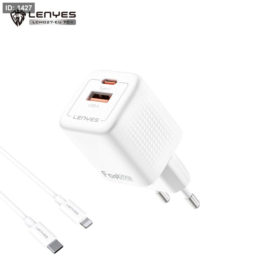 شاحن جداري سريع من Lenyes بقدرة عالية وصغير الحجم، مناسب لشحن الهواتف الذكية والأجهزة الأخرى بسرعة وأمان عبر منفذ USB-C و TC كيبل TC-I