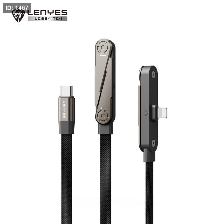 كابل ذكي متعدد الاستخدام من LENYES موديل LC554 TC-I، يجمع بين منفذ Type-C وLightning مع تصميم مغناطيسي/قابل للطي لسهولة الحمل والتنظيم.
