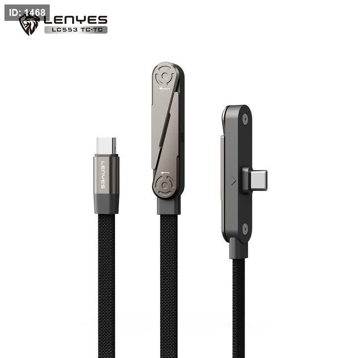 كابل ذكي متعدد الاستخدام من LENYES موديل LC553 TC-TC، يجمع بين منفذ Type-C وType-C مع تصميم مغناطيسي/قابل للطي لسهولة الحمل والتنظيم