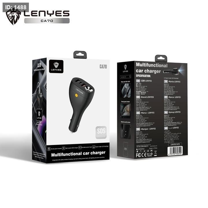 Lenyes CA70 هو شاحن سيارة متعدد المنافذ (4 منافذ ) مصمم لشحن عدة أجهزة مثل الهواتف والسماعات والتابلت في وقت واحد أثناء القيادة، بسرعة وكفاءة مع حماية ذكية للمكونات