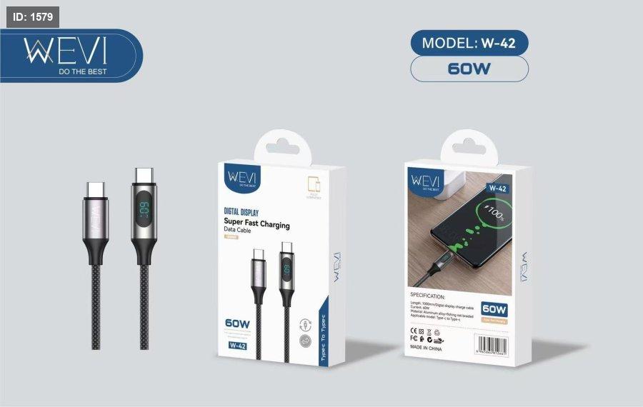 كيبل شحن سريع Type-C إلى Type-C مع شاشة رقمية WEVI W-42