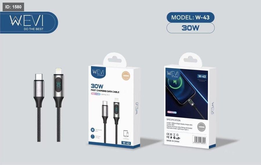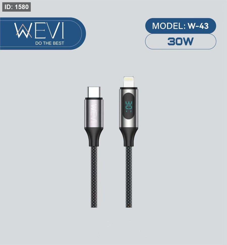 كيبل شحن سريع وعالي الجودة من WEVI، مصمم لتوفير شحن مستقر وسريع مع شاشة رقمية لعرض حالة الشحن، بالإضافة إلى تصميم متين يتحمل الاستخدام اليومي.