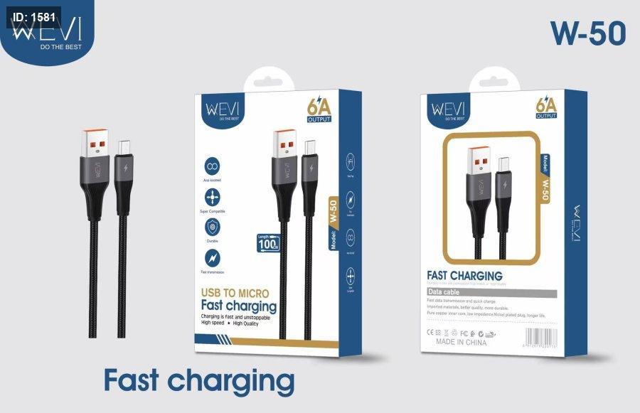 كابل شحن WEVI عالي الأداء يوفر شحن سريع وثابت بقدرة تصل إلى 6 أمبير، مما يجعله مثاليًا للاستخدام اليومي. يتميز بتصميم متين مقاوم للتشابك والتلف، مع توافق واسع مع مختلف الأجهزة التي تعمل بمنفذ Micro USB.
