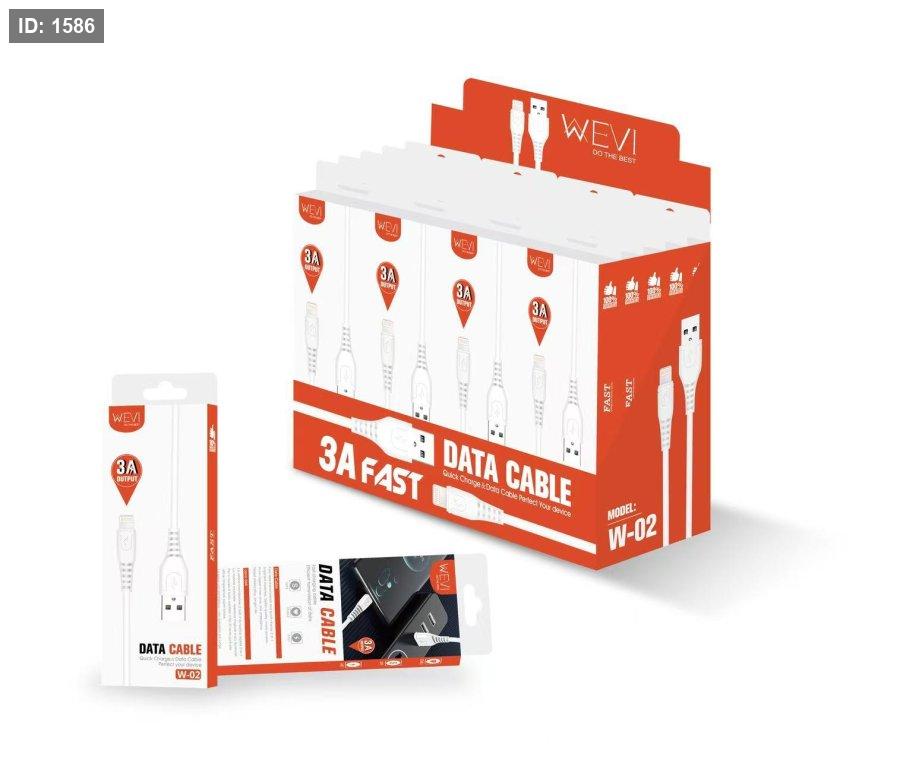 كيبل WEVI عالي الجودة للشحن ونقل البيانات بسرعة، يدعم شحن سريع حتى 3A مع تصميم متين وآمن للاستخدام اليومي.